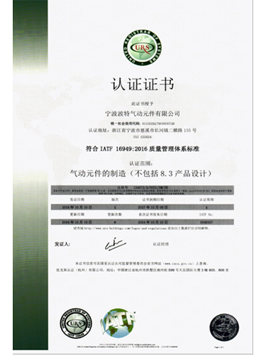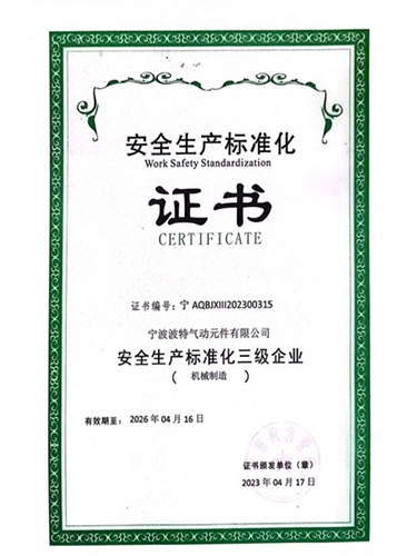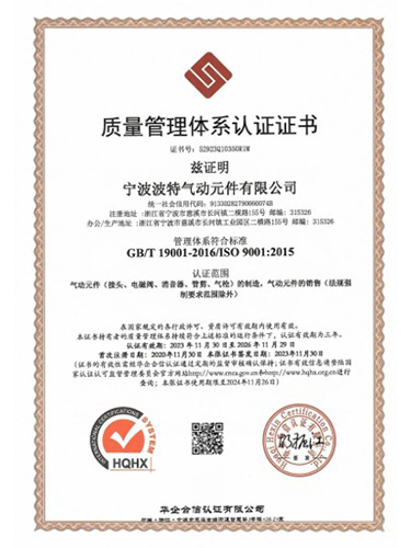 宁波波特气动元件有限公司成立于2006年,是一家集研发、生产、销售及国际贸易为一体的气动元件专业制造公司。公司拥有23000㎡ 工厂,10万级洁净车间和自动化生产线。已通过ISO9001、ISO16949、RoHS、Reach、DOT等认证,荣获省级高新技术企业研发中心、四星级绿色工厂、十大气动元件品牌等称号。深耕气动元件领域20载,波特气动以尖端智造实力与深度场景洞察,深受全球客户信赖,产品服务于汽车自动化、环保、食品机械等30多个行业。我们严格把控从高纯度原材料到成品的每一环节,确保全系产品具备工业级密封性、耐腐蚀性与超长寿命。我们不仅是气动供应商,更是您气动系统的终身伙伴。针对您的产线痛点,波特气动超越传统供应商角色,可为您定制优化方案,协同优化效率与能耗,并提供24小时快速响应的专家级技术支持和售后保障。