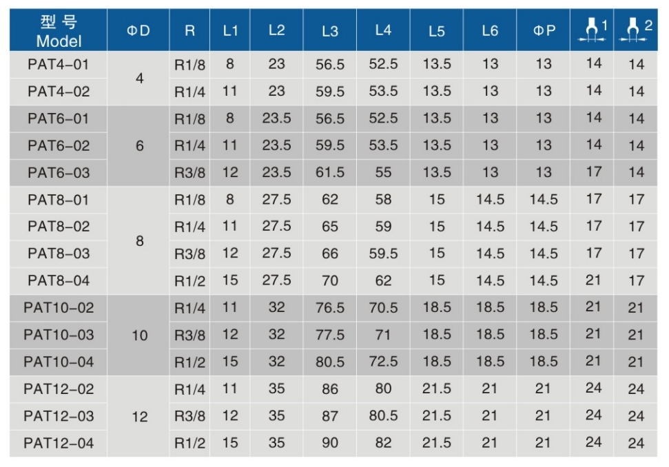 • 螺纹规格:R1/8、R1/4、R3/8、R1/2