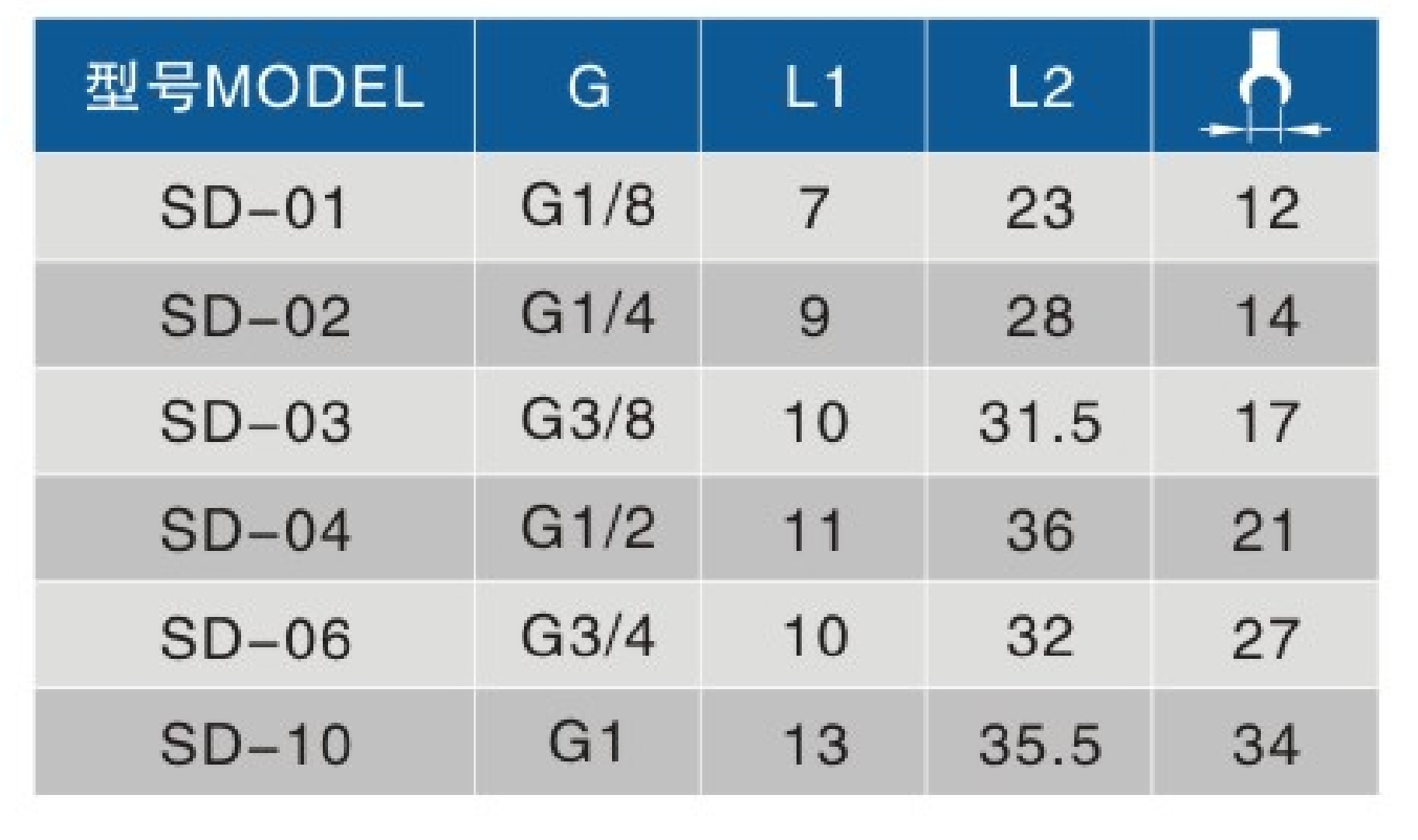 • 螺纹规格:G1/8、G1/4、G3/8、G1/2、G3/4、G1