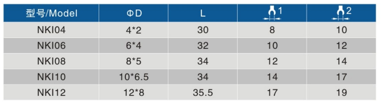 NK式接头适用于PU管,尼龙管管路的连接。优点在与连接部对管子有很好的保护。最大工作压力大于管子的承受压力。