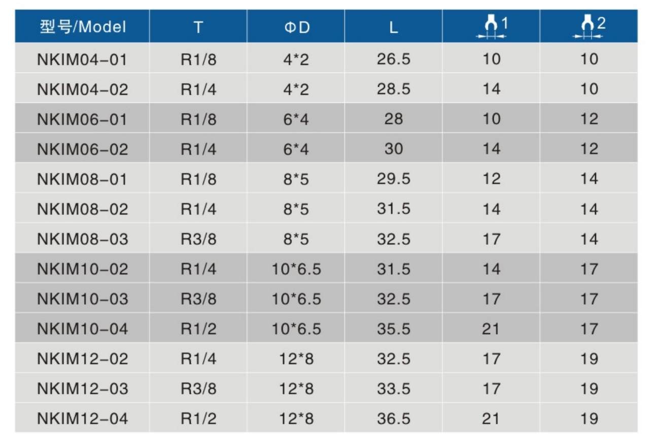 NK式接头适用于PU管,尼龙管管路的连接。优点在与连接部对管子有很好的保护。最大工作压力大于管子的承受压力。