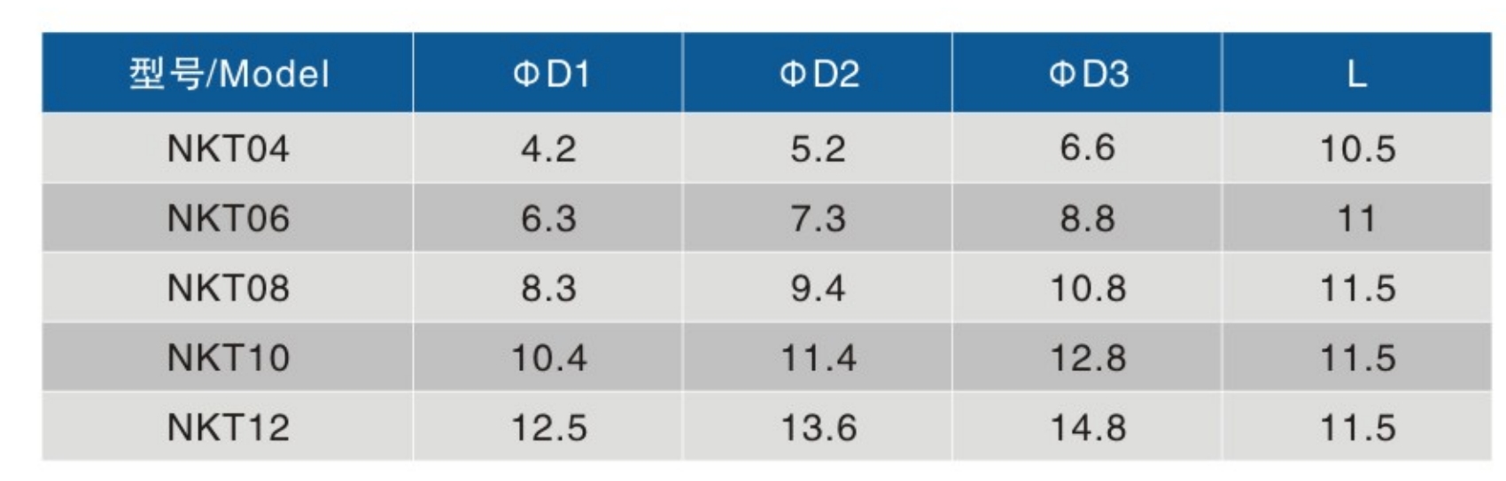 * 本公司也生产Φ3、Φ5、Φ7、Φ9、Φ14、Φ15、Φ1/8等非常规产品