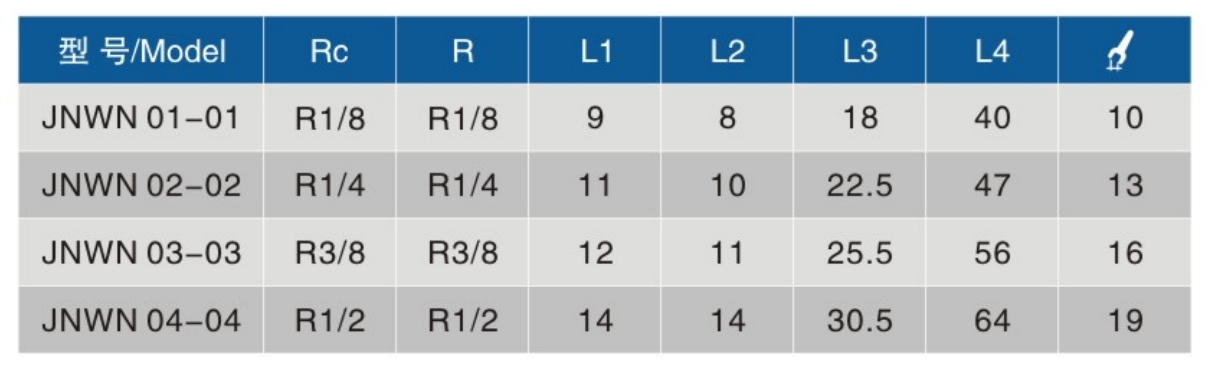 • 螺纹规格Rc : R1/8、R1/4、R3/8、R1/2