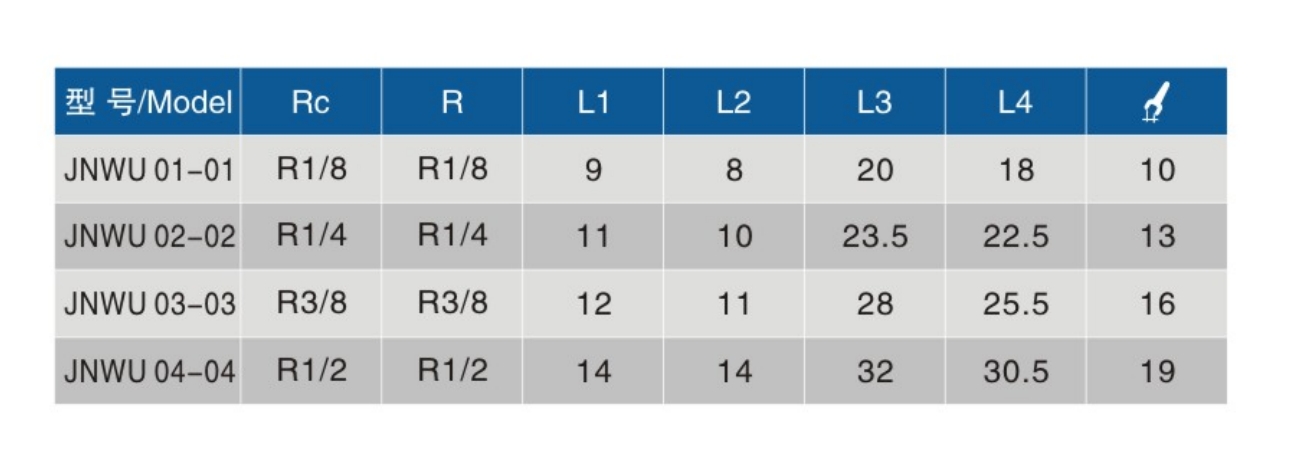 • 螺纹规格Rc : R1/8、R1/4、R3/8、R1/2