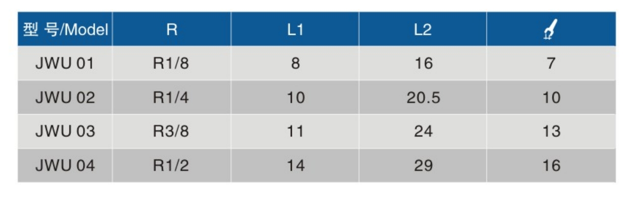 • 螺纹规格: R1/8、R1/4、R3/8、R1/2