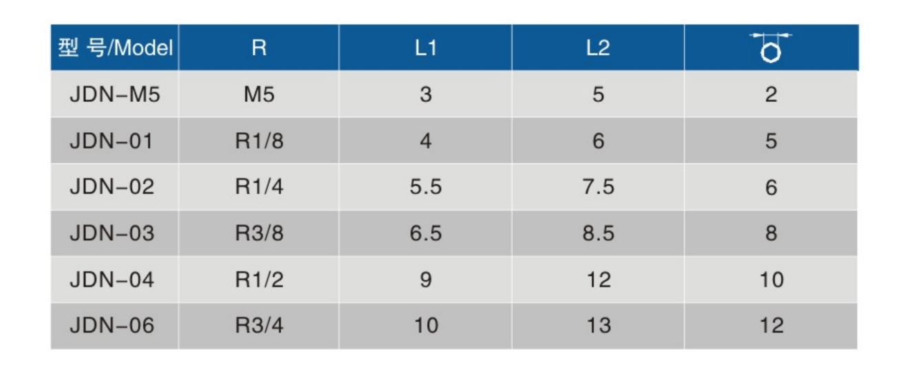 • 螺纹规格1:M5、R1/8、R1/4、R3/8、R1/2、R3/4