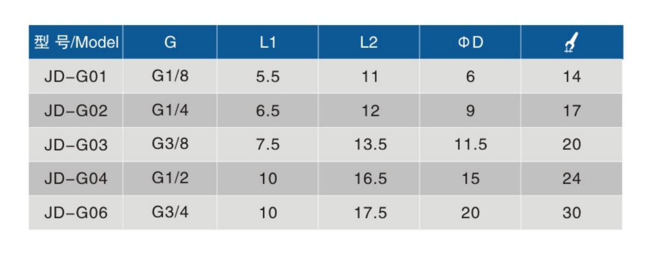 • 螺纹规格1:G1/8、G1/4、G3/8、G1/2、G3/4