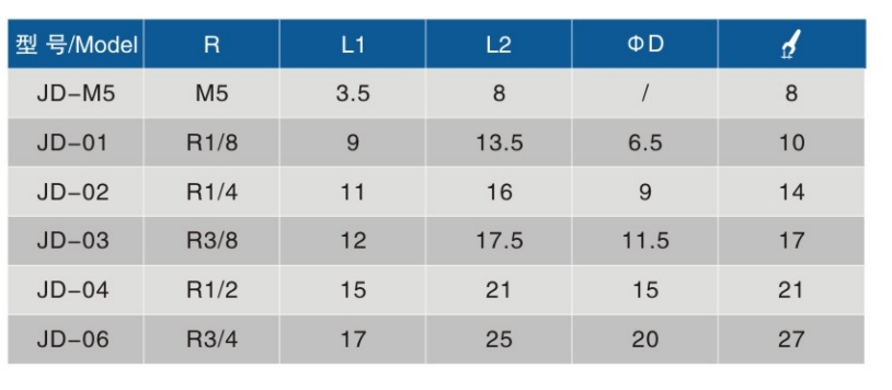 • 螺纹规格1:M5、R1/8、R1/4、R3/8、R1/2、R3/4