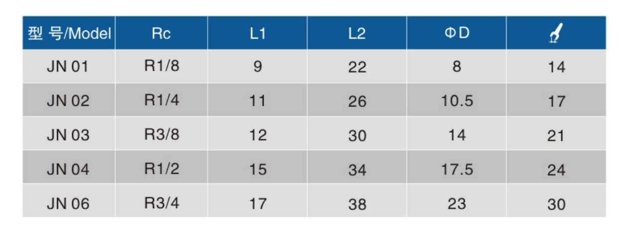 • 螺纹规格1:R1/8、R1/4、R3/8、R1/2、R3/4