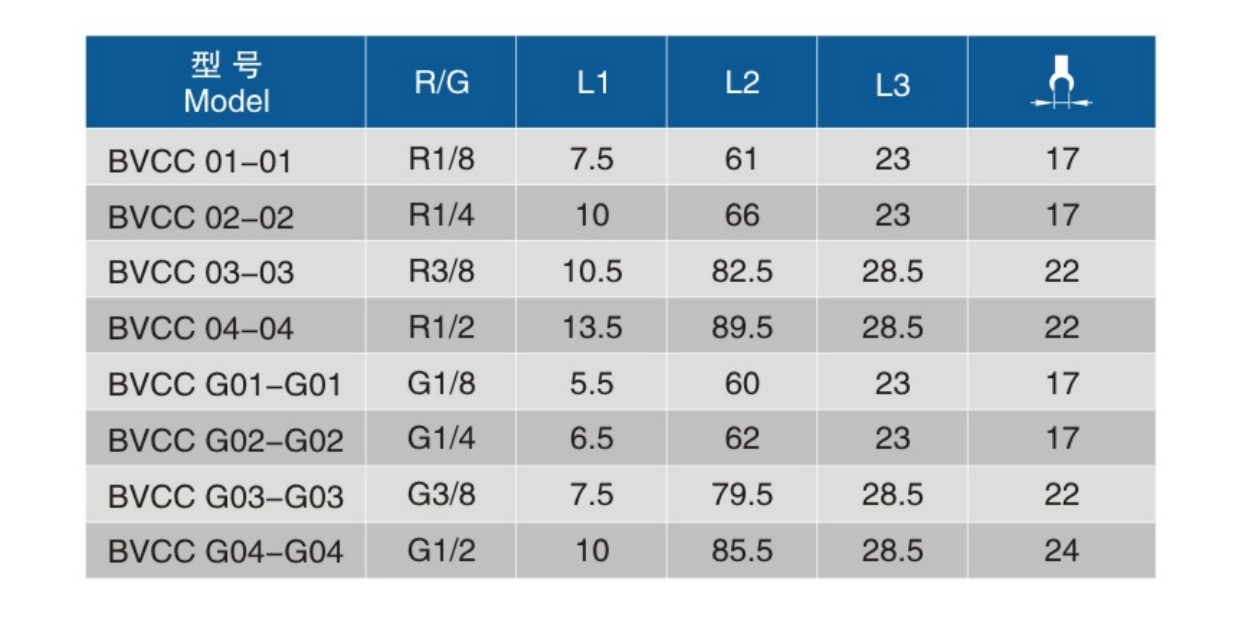 • 螺纹类型:R1/8、R1/4、R3/8、R1/2、G1/8、G1/4、G3/8、G1/2