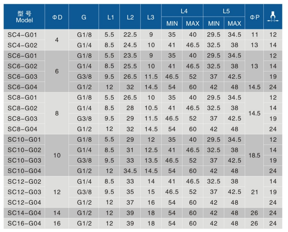 • 螺纹规格:G01、G02、G03、G04