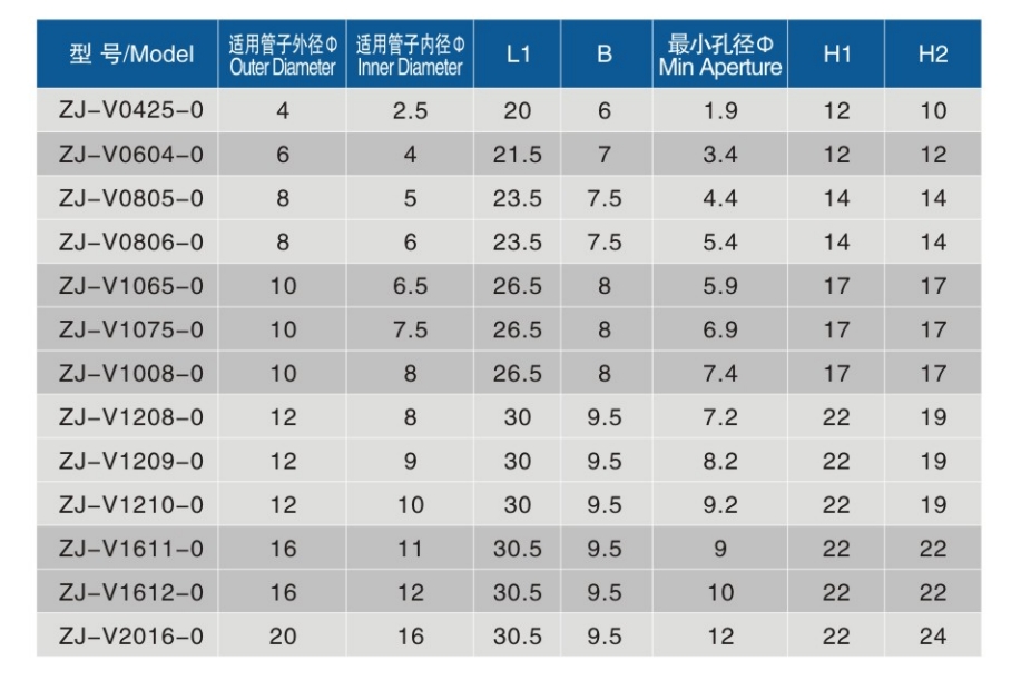 • 适用管子规格:4*2.5、6*4、8*5、8*6、10*6.5、10*7.5、10*8、12*8、12*9、12*10、16*11、16*12、20*16