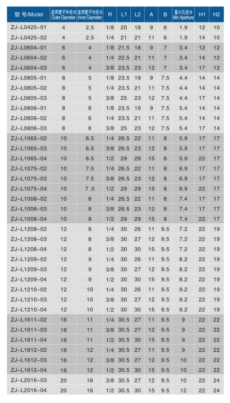 • 适用管子规格:4*2.5、6*4、8*5、8*6、10*6.5、10*7.5、10*8、12*8、12*9、12*10、16*11、16*12、20*16