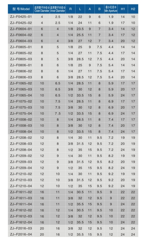 • 适用管子规格:4*2.5、6*4、8*5、8*6、10*6.5、10*7.5、10*8、12*8、12*9、12*10、16*11、16*12、20*16