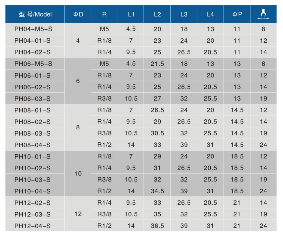 • 螺纹规格:M5-S、01-S、02-S、03-S、04-S