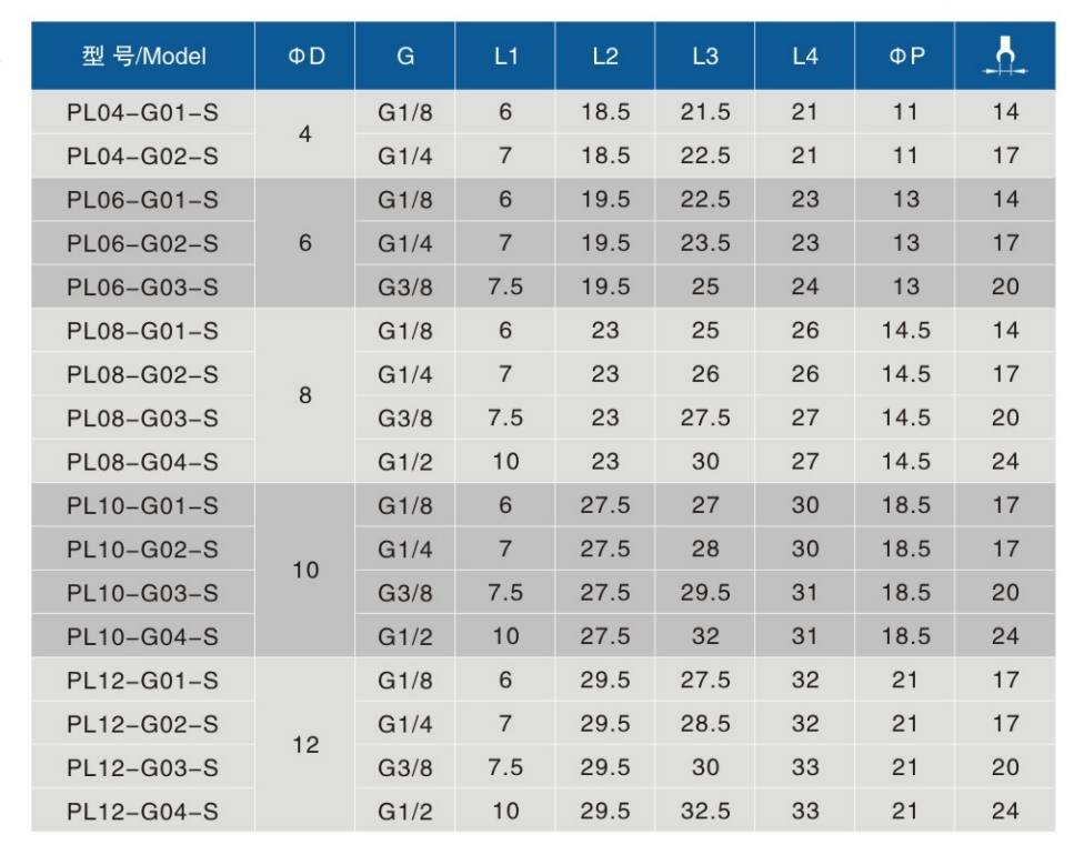 • 螺纹规格:G01-S、G02-S、G03-S、G04-S
