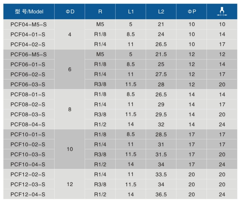 • 螺纹规格:M5-S、01-S、02-S、03-S、04-S