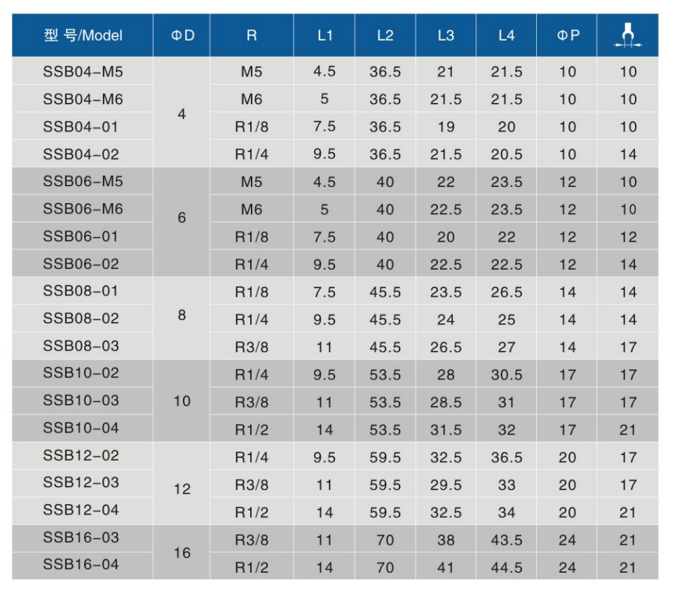 • 螺纹规格:M5、M6、01、02、03、04