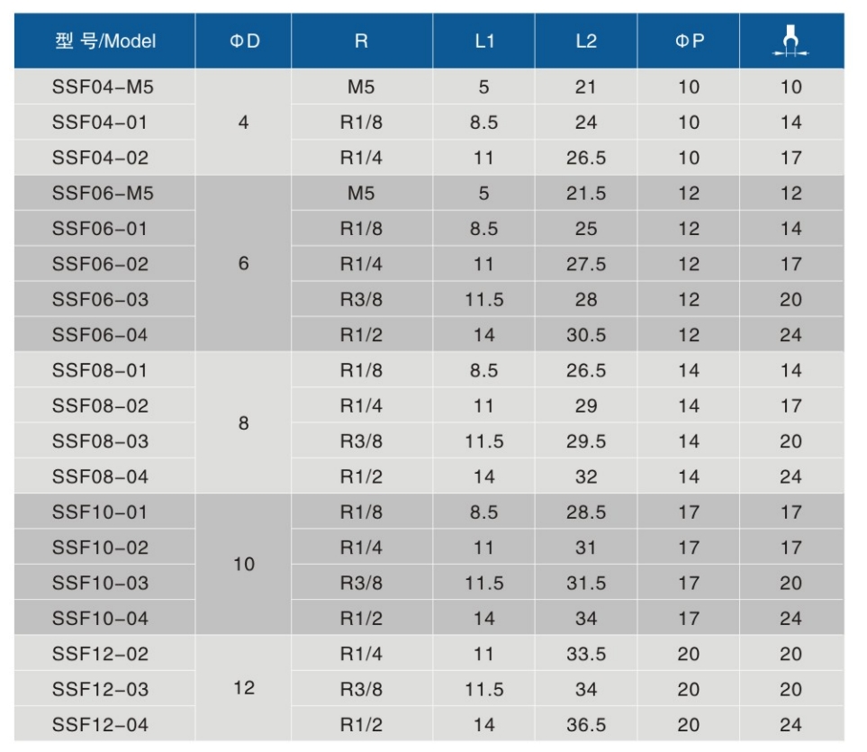 • 螺纹规格:M5、01、02、03、04