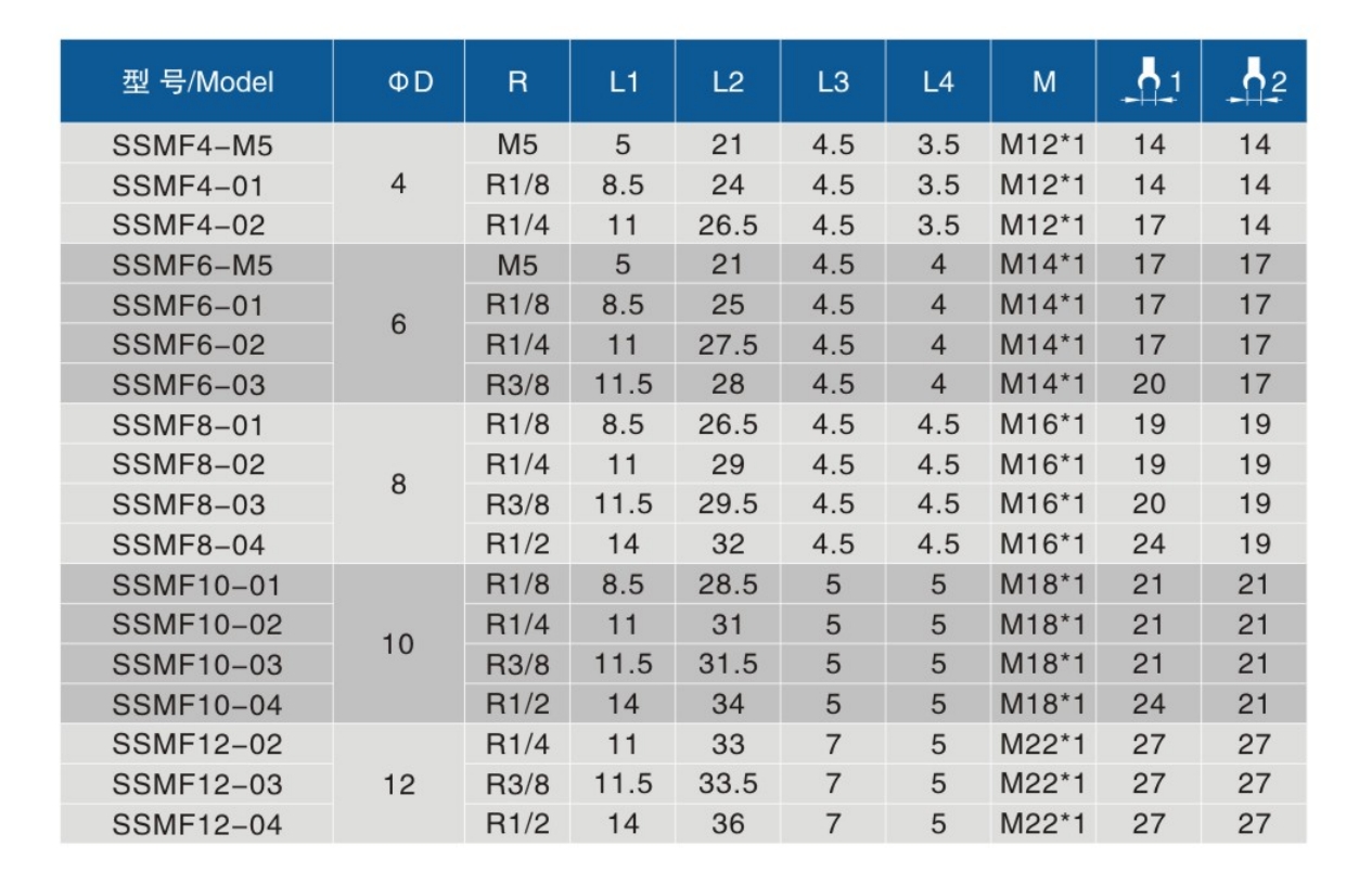 • 螺纹规格:M5、01、02、03、04