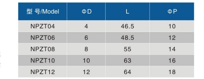 * 本公司也生产Φ3、Φ5、Φ7、Φ9、Φ14、Φ15、Φ1/8等非常规产品