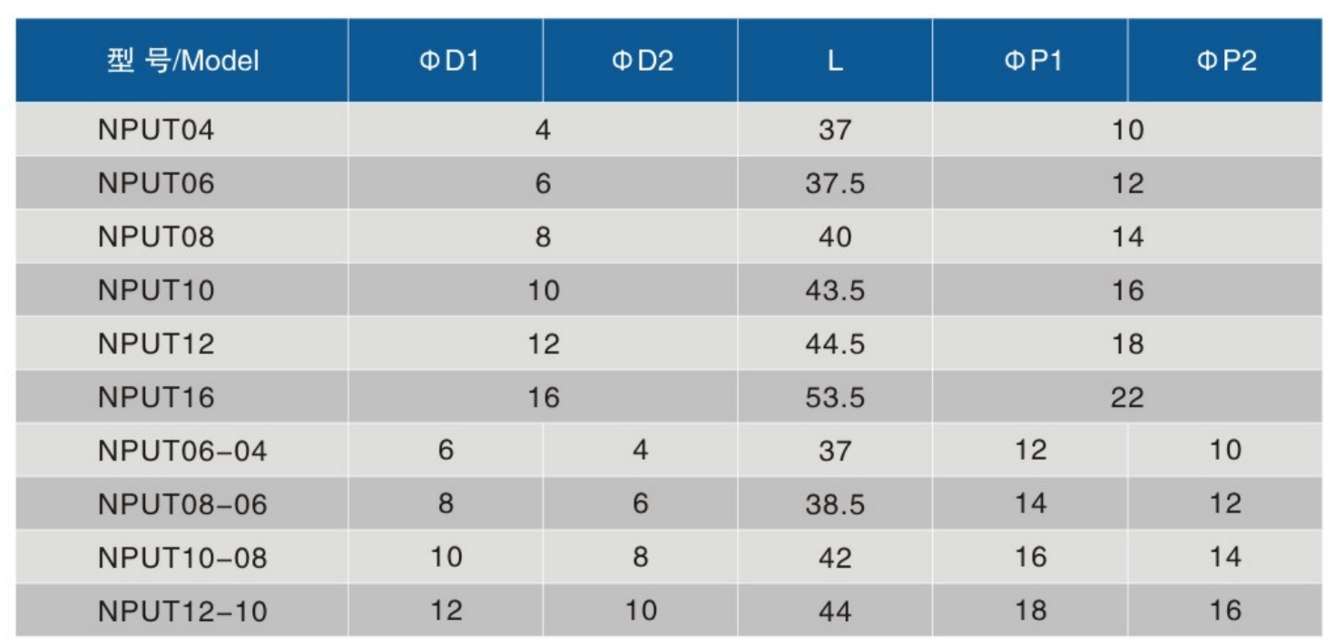 • 型号:NPUT 全铜直通