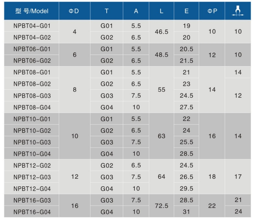 • 螺纹规格:G01、G02、G03、G04