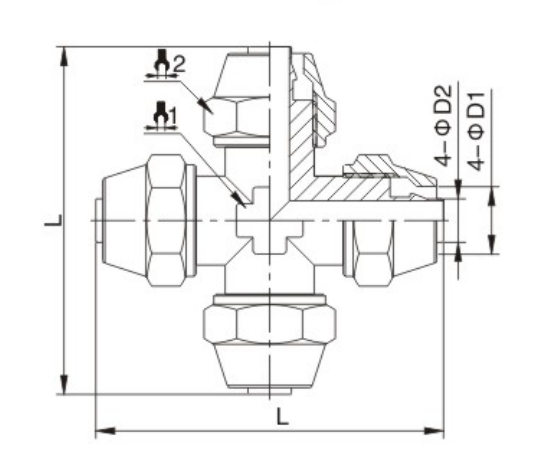 • 型号:SM-Z口口-0 锁母式十字形联管四通