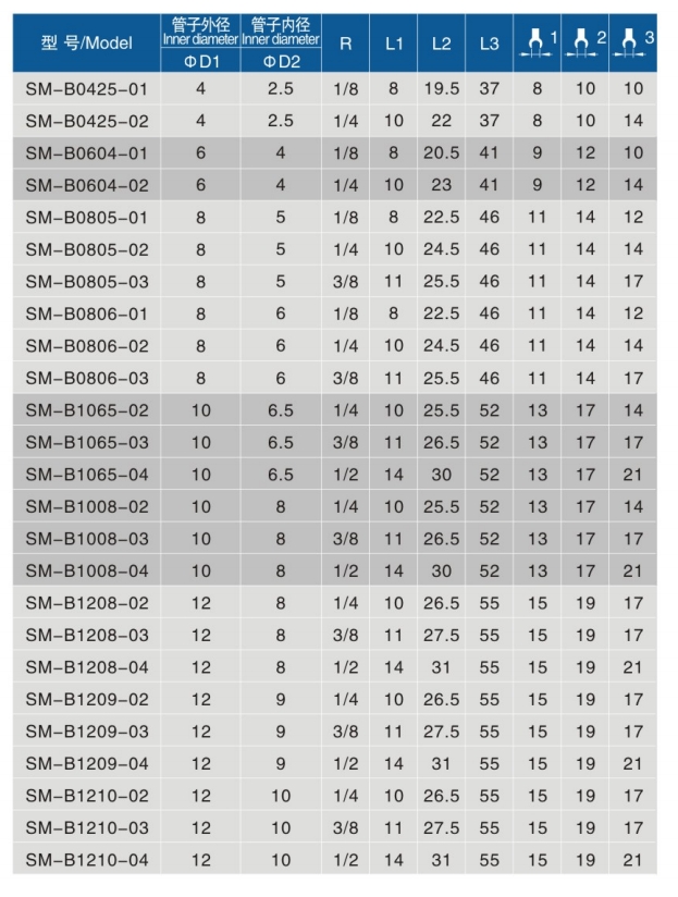 • 管子内径:4、6、8、10、12