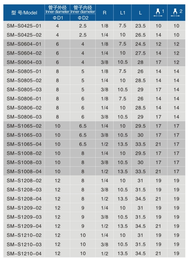 * 本公司也生产Φ3、Φ5、Φ7、Φ9、Φ14、Φ15、Φ1/8等非常规产品
