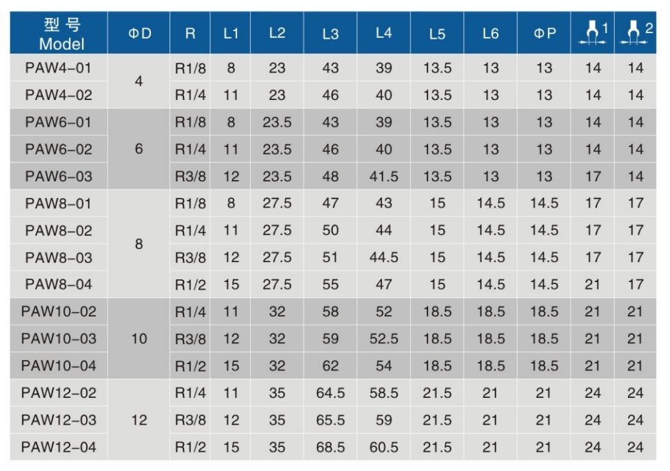 • 螺纹规格:R1/8、R1/4、R3/8、R1/2