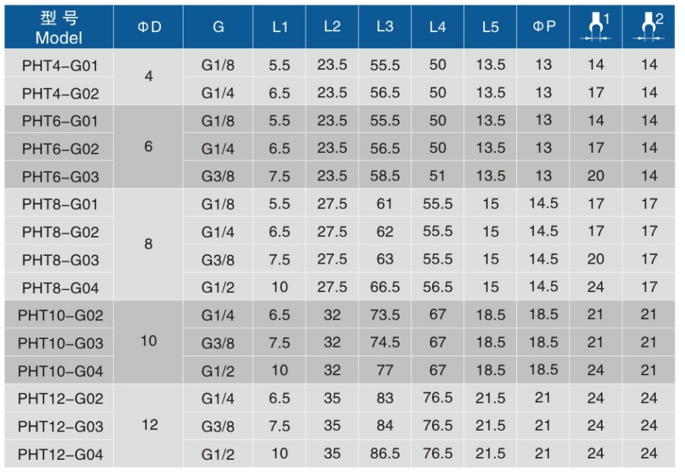 • 螺纹规格:G1/8、G1/4、G3/8、G1/2