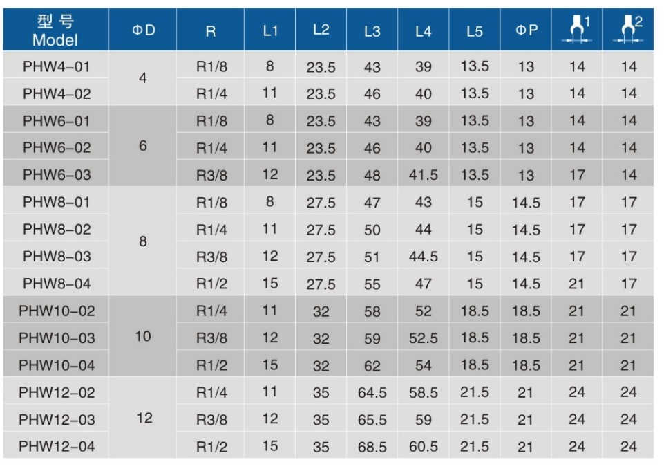 • 螺纹规格:R1/8、R1/4、R3/8、R1/2