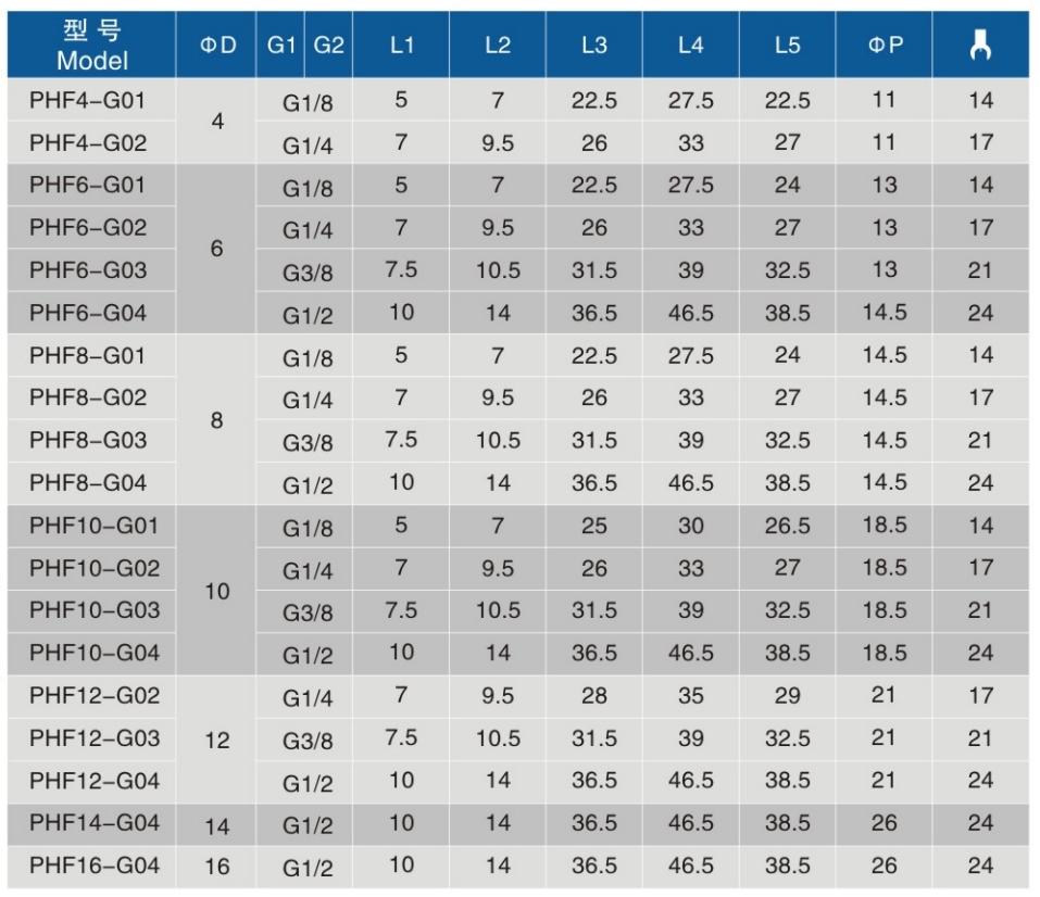 • 螺纹规格:G1/8、G1/4、G3/8、G1/2