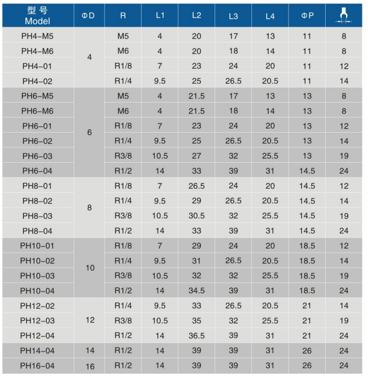 • 型号:PH-R 螺纹回转直角终端