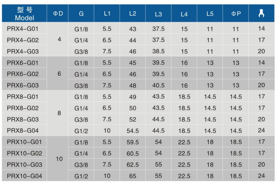 • 螺纹规格:G1/8、G1/4、G3/8、G1/2