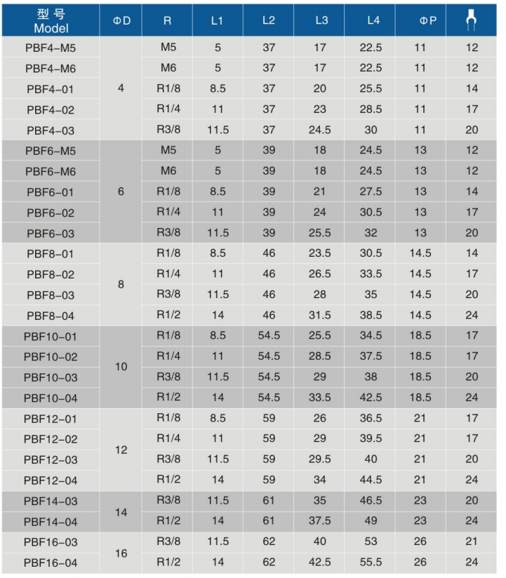 • 螺纹规格:M5、M6、R1/8、R1/4、R3/8、R1/2