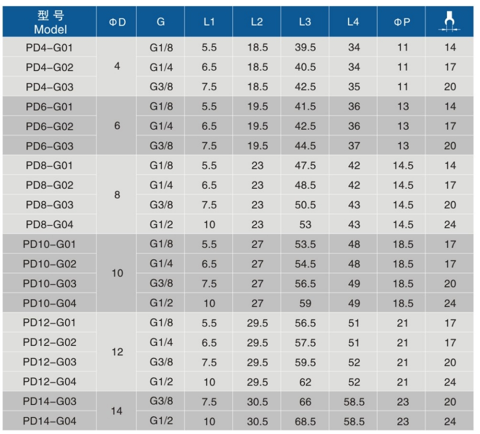• 螺纹规格:G1/8、G1/4、G3/8、G1/2