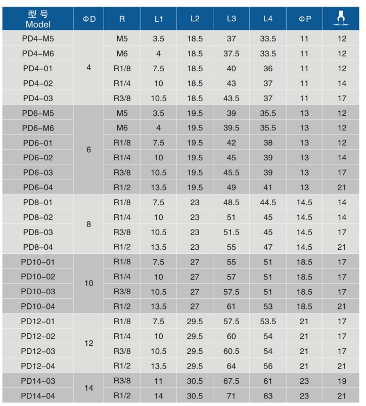 • 螺纹规格:M5、M6、R1/8、R1/4、R3/8、R1/2