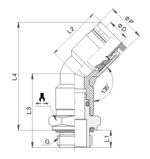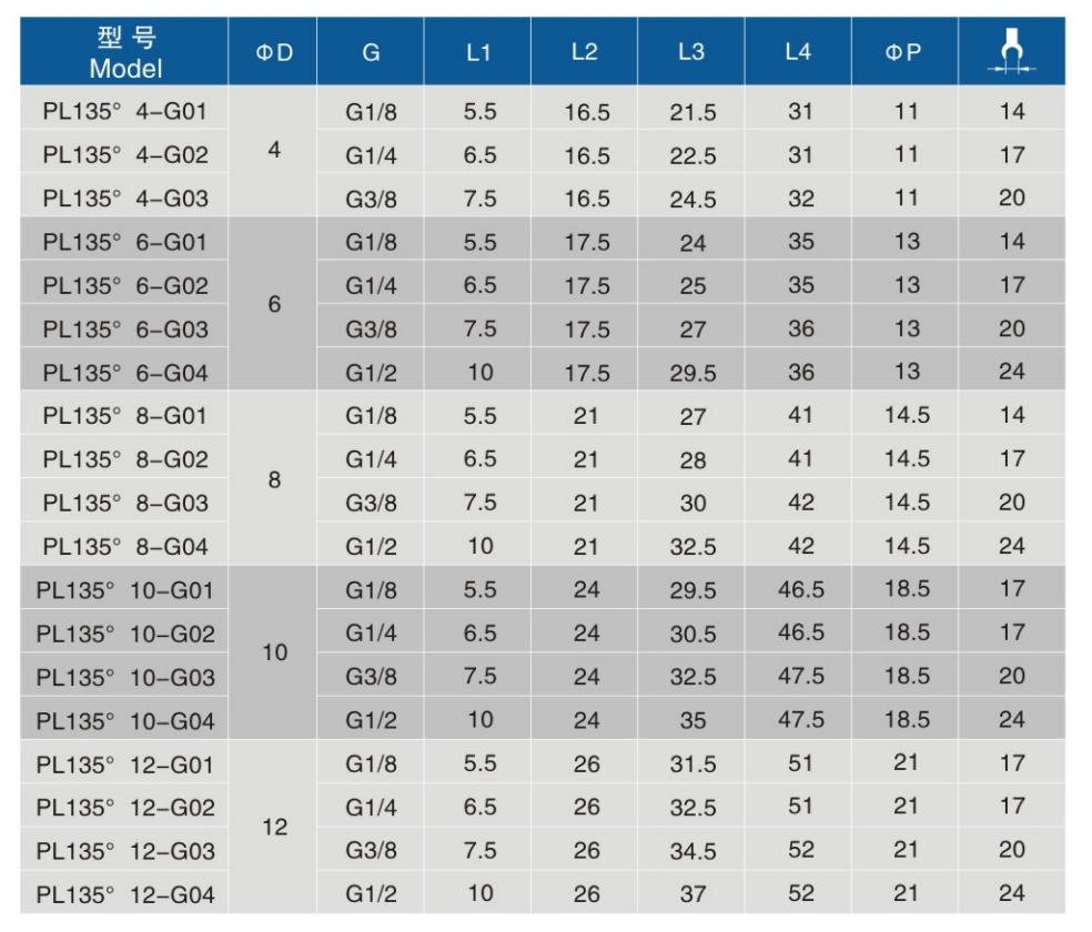 • 型号:PL135°-G 螺纹终端