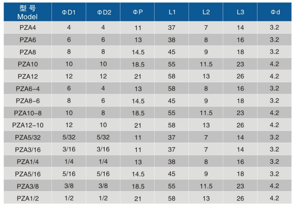 • 按钮规格:4、6、8、10、12、6、8、10、12、5/32、3/16、1/4、5/16、3/8、1/2