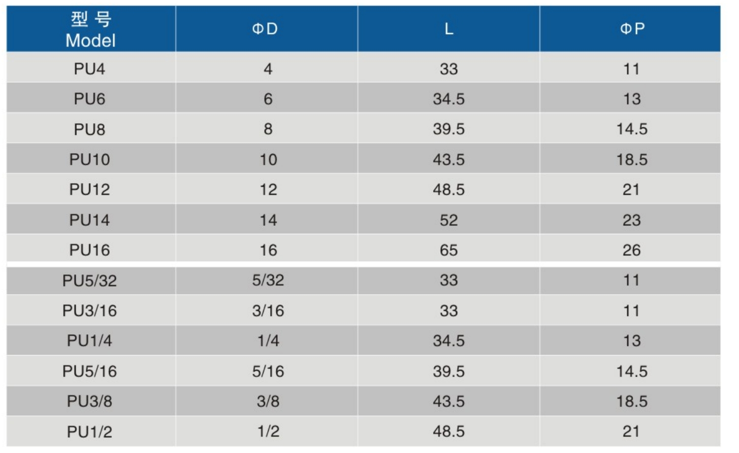 • 型号:PU 联管直通