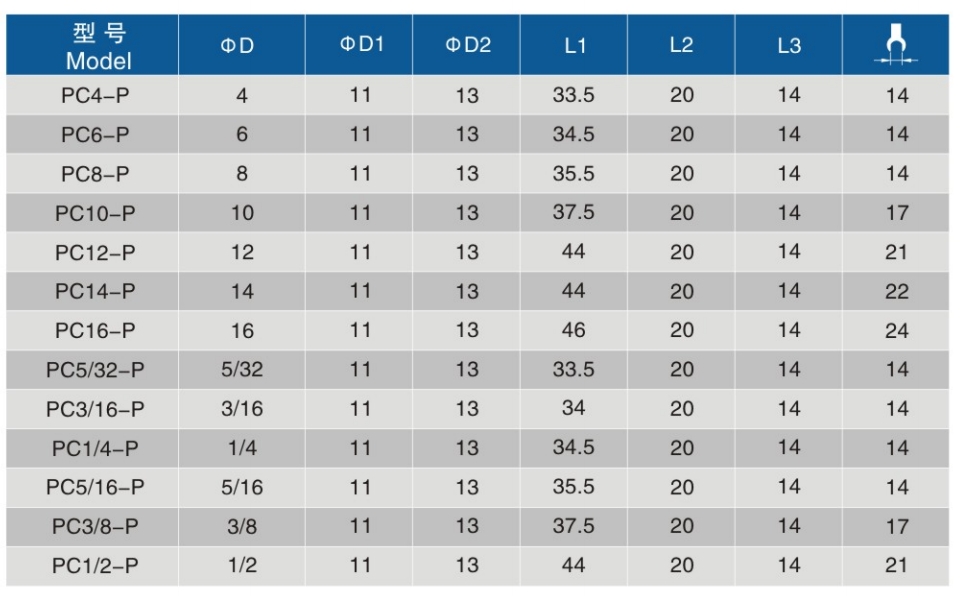 • 螺纹规格:4-P、6-P、8-P、10-P、12-P、14-P、16-P、5/32-P、3/16-P、1/4-P、3/8-P、5/16-P、1/2-P
