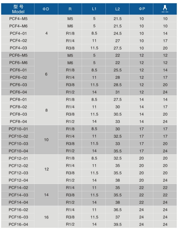 • 型号:PCF-R内螺纹直通