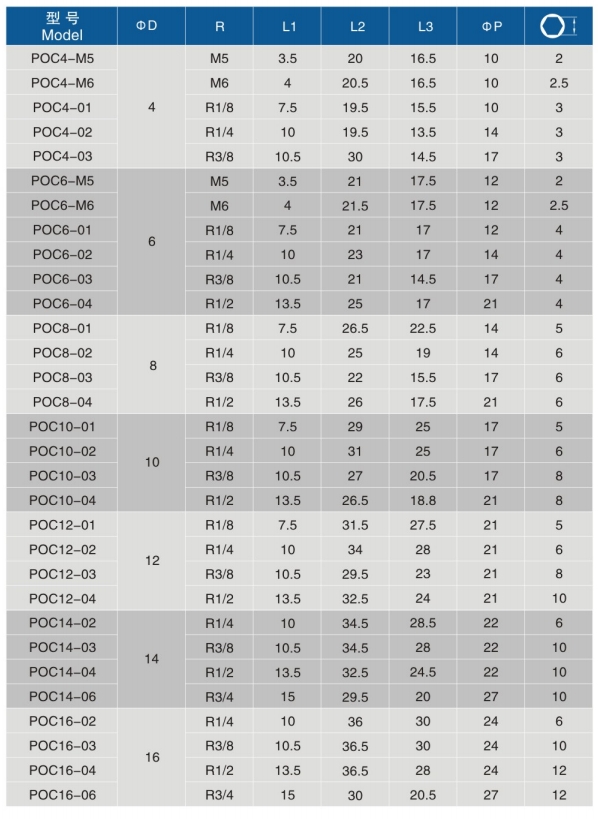 • 型号:POC-R 螺纹直通